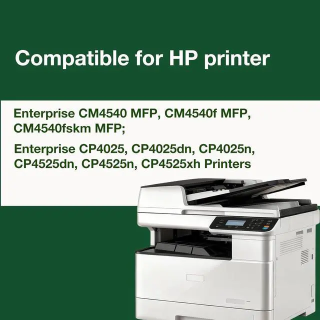 Toner Cartridge Work With: Compatible For HP Color LaserJet Enterprise CP4025,CP4025dn, CP4025n,CP4525,CP4525dn, CP4525n, CP4525xh; Color LaserJet Enterprise CM4540 MFP, CM4540f MFP, CM4540fskm MFP Printer