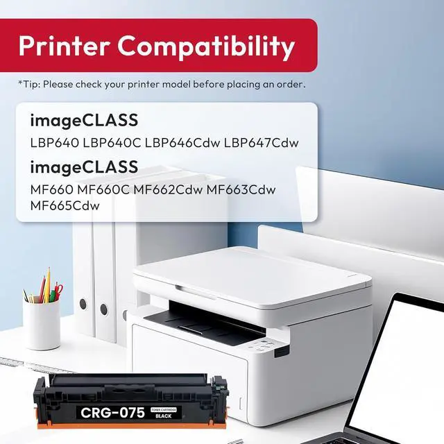 Exceptional Print Quality: Crafted with high-quality toner powder and advanced imaging technology, CRG075 toner cartridges deliver sharp, professional-grade text and vivid, detailed graphics. It caters to all your high-quality printing requirements in office, study, and creative scenarios.