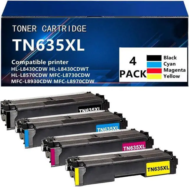 Package Contents: TN635XL Black Toner x1TN635XL Yellow Toner x1TN635XL Cyan Toner x1TN635XL Magenta Toner x1