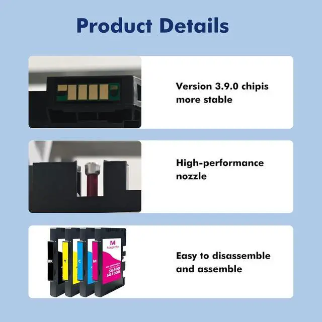 Package Contents: With SG500/SG1000 sublimation ink , 1 × Black, 1 × Cyan, 1 × Magenta, 1 × Yellow, with chip.