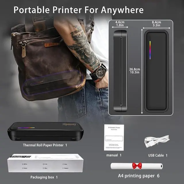 Ultra-Portable PrinterThis compact thermal printer features an ultra-lightweight design, measuring 10.5 x 3.5 x 1.8 inches and weighing just 1.4 lbs, making it easy to slip into a bag and take anywhere for instant printing. To use, simply download the "Tiny Print" app and connect via Bluetooth for wireless printing. The app also offers a variety of creative content to enhance your printing experience, from customizable templates to ready-to-print designs.