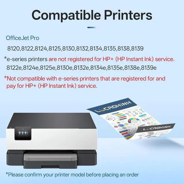 Printer Compatibility: 923XL ink cartridges compatible with OfficeJet Pro 8120 8122 8124 8125 8130 8132 8134 8135 8138 8139.