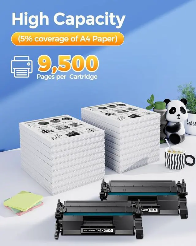 High Page Yield: Up to 9,500 Pages per 148X W1480X Black Toner (Base on Letter A4, at 5% coverage)