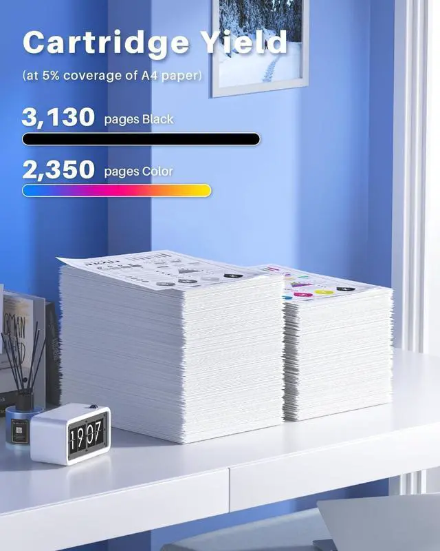 High-capacity 067H toner cartridge yields 3130 pages in black and can print 2350 pages in color, based on 5% coverage of A4 paper
