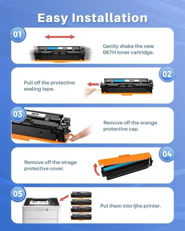 Package Includes: 067H toner cartridges kit 1 × 067H black, 1 × 067H cyan, 1 × 067H magenta, 1 × 067H yellow,Installation Instructions