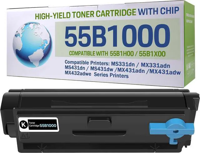 Compatible Printer:55B1000 toner cartridges for Lexmark MS331dn MX331adn MS431dn MS431dw MX431adn MX431adw MX432adwe series printer.Compatible with Lexmark 55B1H00 55B1X00 toner cartridge.