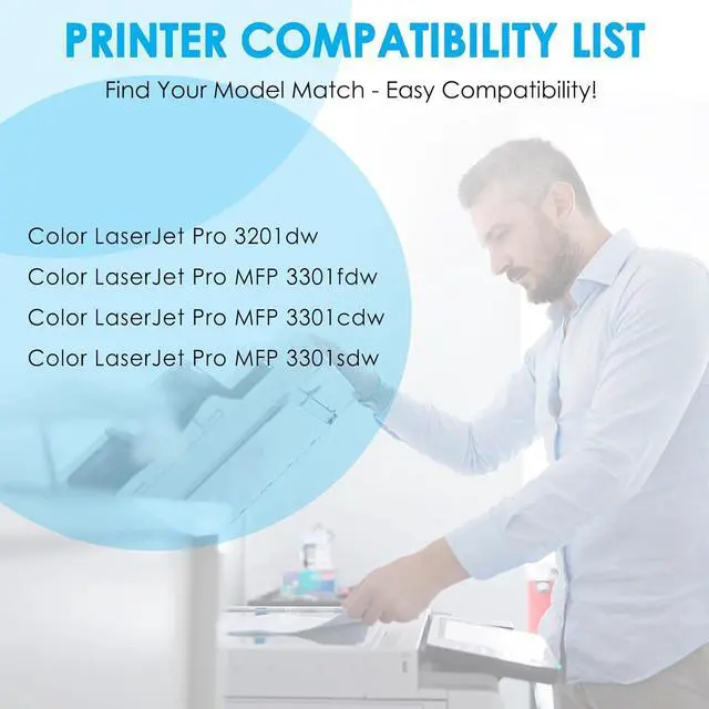 Compatible Printers: Works seamlessly with HP Color LaserJet Pro MFP 3301, 3301fdw, 3301cdw, 3301sdw, and Color LaserJet Pro 3201 3201dw series printers