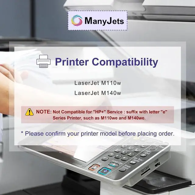 IMPORTANT NOTE : Not compatible for printers' suffix with letter"e" such as M110we M139we M140we (Not Compatible for "HP+" Service "e" Series Printer) Please confirm your printer model before placing order.