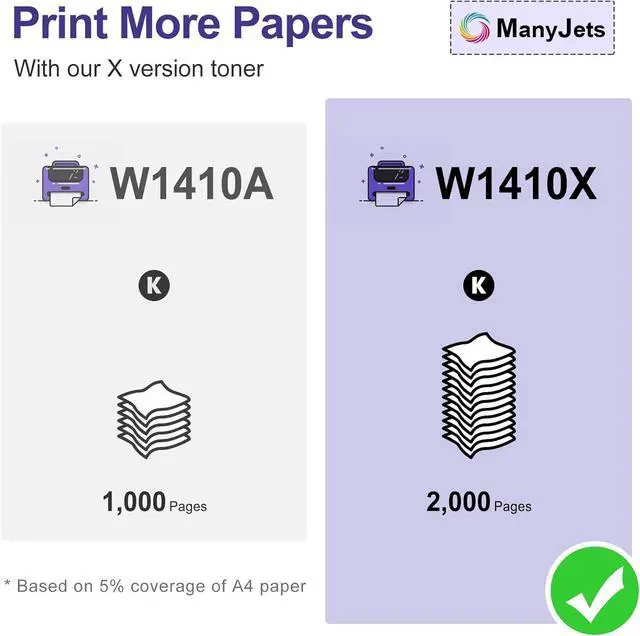 ADVANTAGE: ManyJets 141X W1410X black toner cartridges suitable for different occasions and easy to install,clear vivid intelligently identity your printer,make printing easy and affordable for customers.