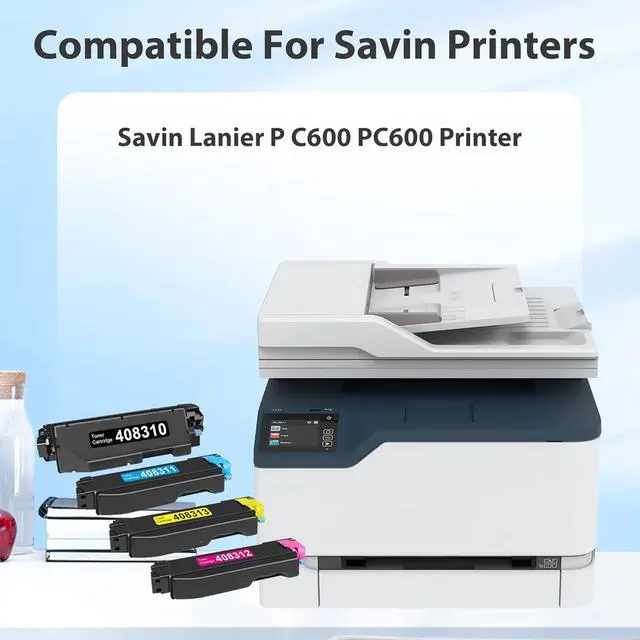 Package Contents 4-Pack P C600 PC600 Toner Cartridge -408310 Black Toner Cartridge, 408311 Cyan Toner Cartridge, 408312 Magenta Toner Cartridge, 408313 Yellow Toner Cartridge
