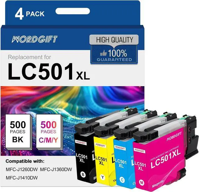 Perfect Compatibility: Designed to replace LC501 and LC501XL ink cartridges. Fully compatible with Brother MFC-J1260DW, MFC-J1360DW, and MFC-J1410DW printers.