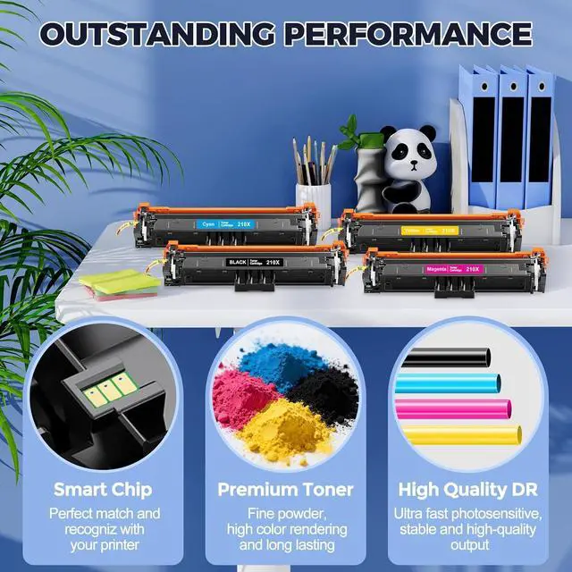 Each Compatible with HP 210X black toner delivers up to 7,500 pages, with 210X color cartridges providing 5,500 pages each (A4, 5% coverage). The high-yield 210X W2100X toner design reduces replacement frequency and cost per page significantly
