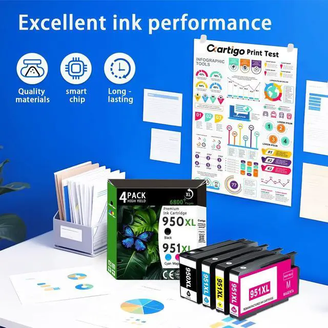 High quality: Our 950XL/951XL Ink Cartridges deliver vibrant, smudge-free prints with sharp text and rich colorsperfect for businesses, schools, hospitals, or frequent home users who demand professional results