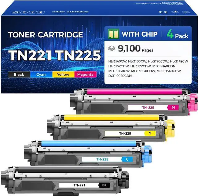 Package Content: 4-pack toner cartridges combo pack (1 × TN221 Black, 1 × TN225 Cyan, 1 × TN225 Magenta, 1 × TN225 Yellow toner Cartridge)