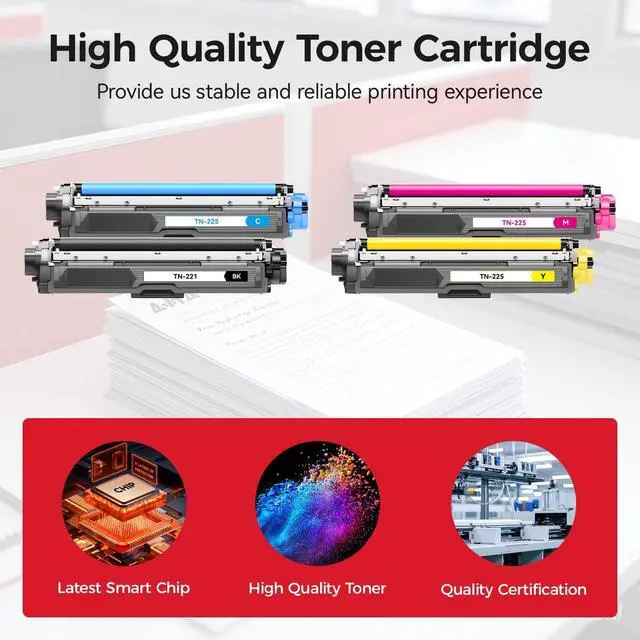 Latest Chip Version: The TN221 TN225 toner cartridge set uses the latest upgraded chip to ensure compatibility with your printer.