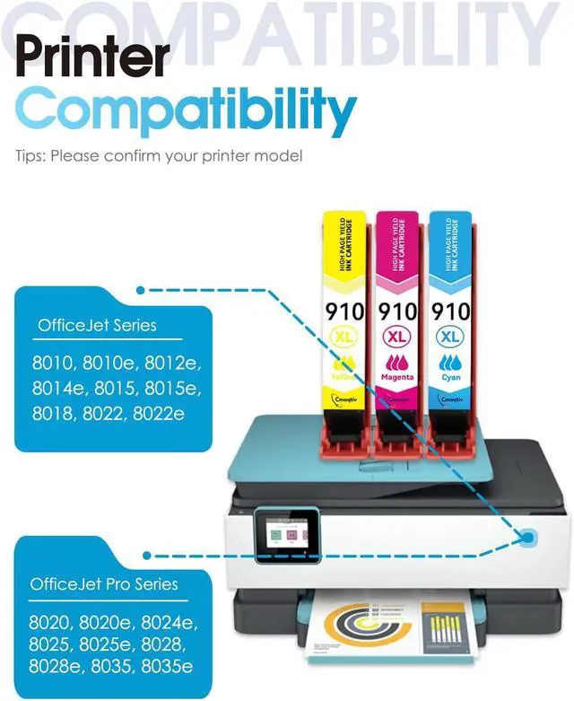 Compatible with e* Series Printer: OfficeJet 8010e 8012e 8014e 8015e 8022e, OfficeJet Pro 8020e 8024e 8025e 8028e 8034e 8035e Printer