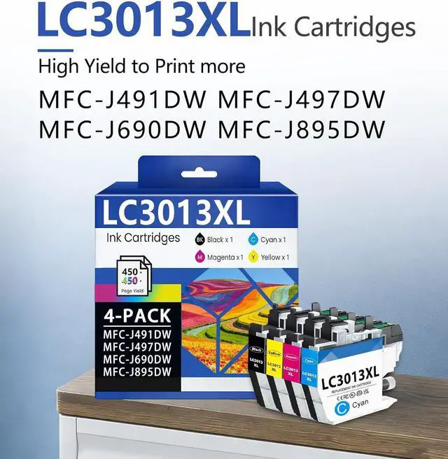 High-Capacity Ink Cartridge Pack: Contains 4 LC3013XL cartridges (1Baclk, 1 Cyan, 1 Magenta, 1 Yellow). Individually sealed packaging prevents ink leakage