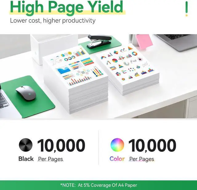 Yield & Version: 10,000 pages for Black and 10,000 pages Color toner cartridge (A4, 5% Coverage), High Yield Version MP C300 toner Cartridges.