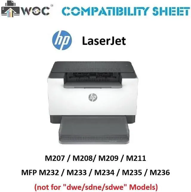 For Use In: HP LaserJet M207d, M207dw, M208d, M208dw, M209d, M209dw, M211d, M211dw, MFP M232dw, MFP M232dwc, MFP M233dw, MFP M233sdn, MFP M233sdw, MFP M234d, MFP M234dw, MFP M234sdw, MFP M234sdn, MFP M235sdw, MFP M236d, MFP M236dw, MFP M236sdw (not for "dwe/sdne/sdwe" Models)