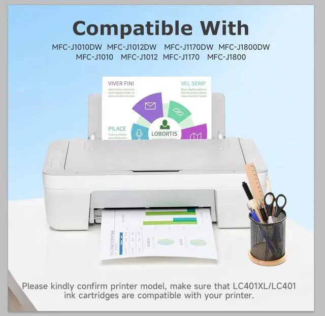 For Brother LC401XL Combo Pack Work with:Ink Cartridges LC401XL use with Brother MFC-J1010DW, MFC-J1012DW, MFC-J1170DW, DCP-J1800DW, DCP-J1140DW printers