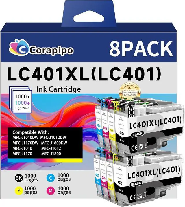 Package Content: LC401XL Ink Cartridges for High Yield Brother LC401 Ink Cartridges Combo Pack - 2 x 401XL Black, 2 x 401XL Cyan, 2 x 401xl Magenta, 2 x 401xl Yellow,Total get 8 Pack for LC401 XL