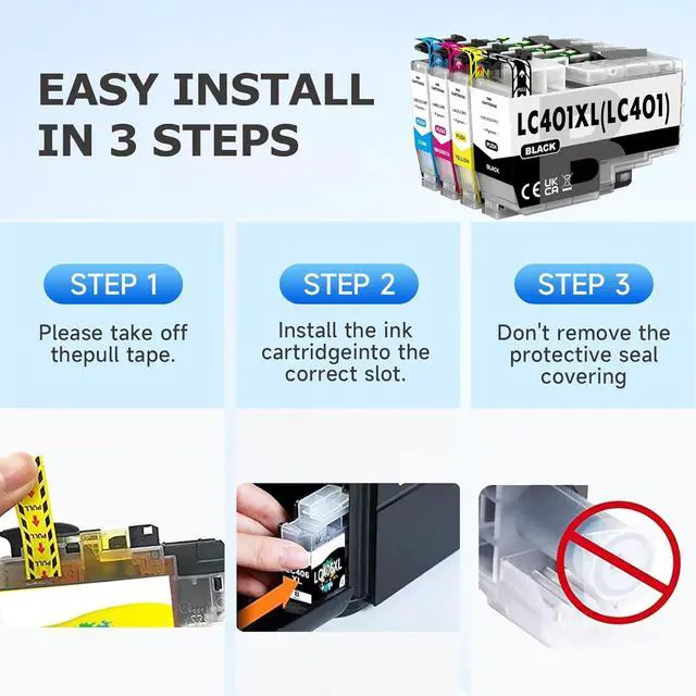 Easy Installation:Direct replacement for Brother LC401/LC406XL Ink, due to equipped with latest intelligent chips, undergoes strict quality control, makes sure quick and easy installation and instant recognization