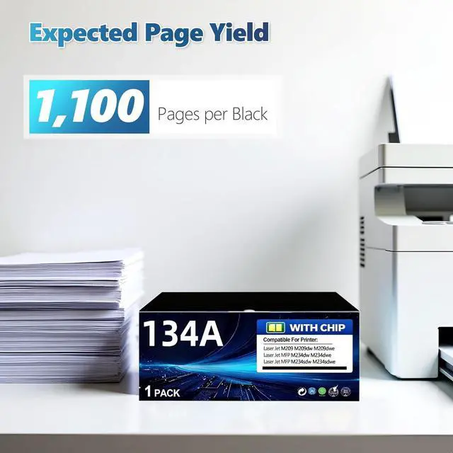 Pre-Installed Chip: Our toner cartridges come with pre-installed chips no need to transfer chips from original 134a/134x cartridges. Simply plug and print directly, saving time and avoiding chip damage