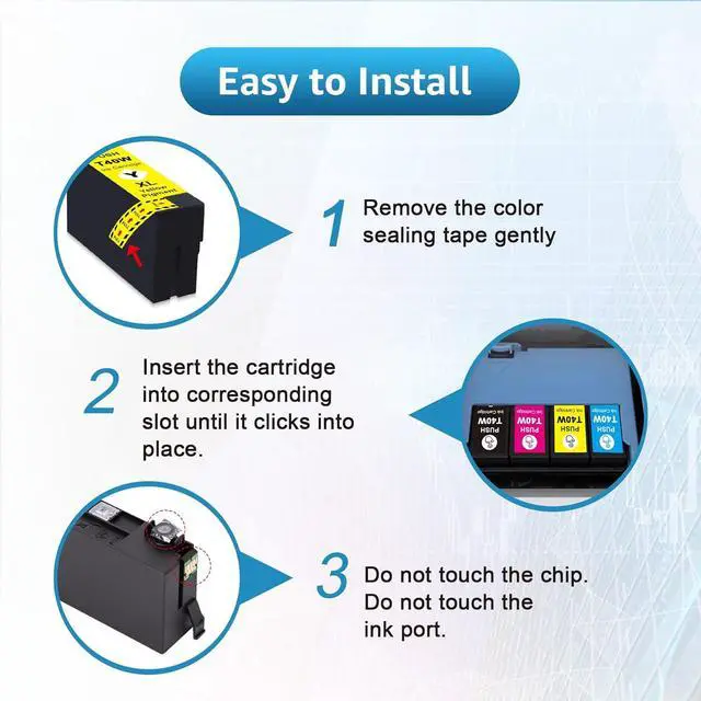 High Capacity: 60ml for Black ink cartridge, 50ml for each color ink cartridge