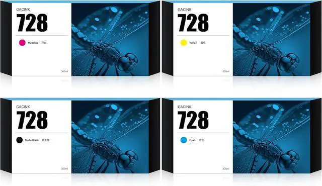 What You Get: 4Pack latest 300ml replacement for HP 728 ink cartridges (Matte Black/Cyan/Magenta/Yellow), backed by our professional and attentive customer service
