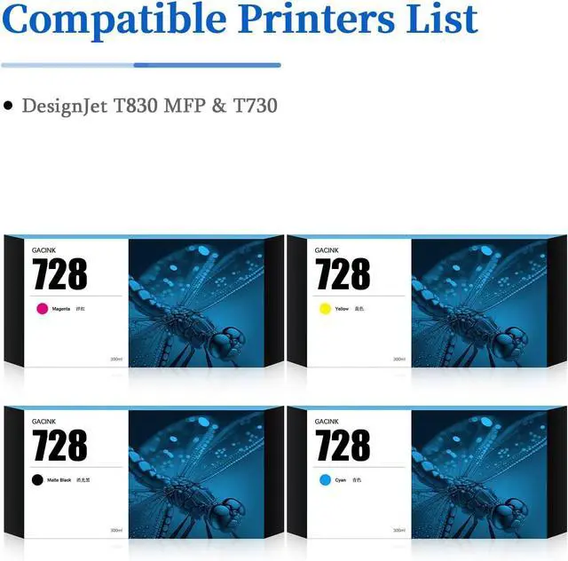Compatible Printer: The 728 ink cartridge is Compatible With HP DesignJet T830 MFP & T730 Large Format Plotter Printers