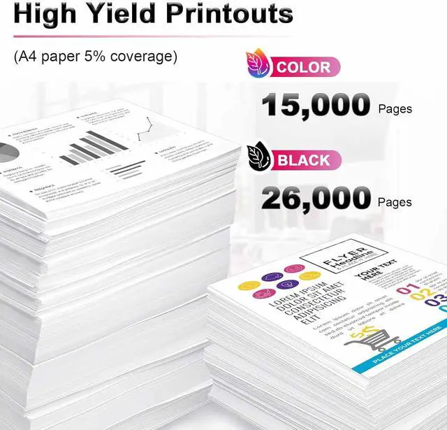 High Capacity Performance: The Toner Cartridge delivers high page yields of up to 26,000 black pages and 15,000 color pages (at 5% A4 coverage). Requiring 60% less maintenance and reducing operational costs, it's perfect for busy offices and schools needing reliable, low-maintenance printing