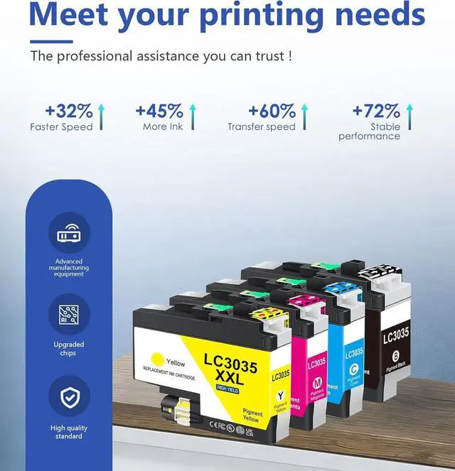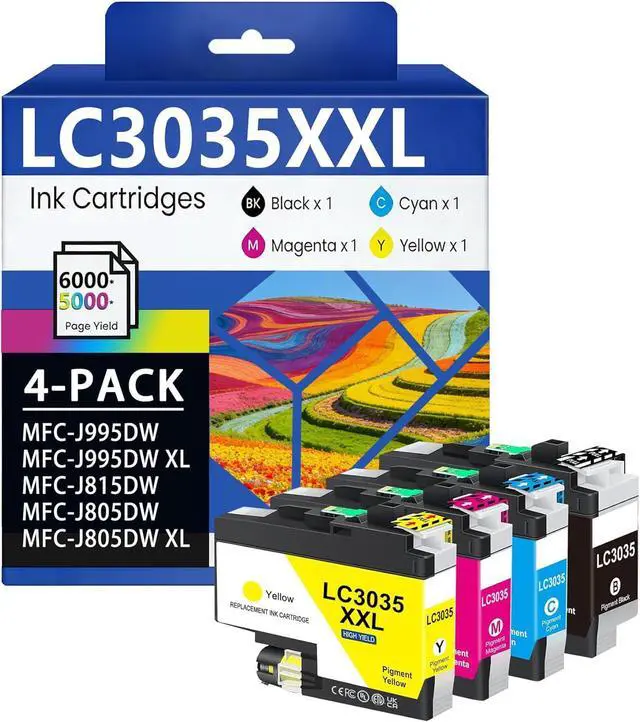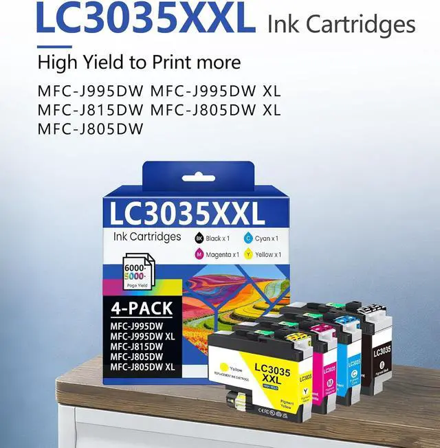 High-Capacity Ink Cartridge Pack: Contains 4 LC3035XXL cartridges (1Baclk, 1 Cyan, 1 Magenta, 1 Yellow). Individually sealed packaging prevents ink leakage