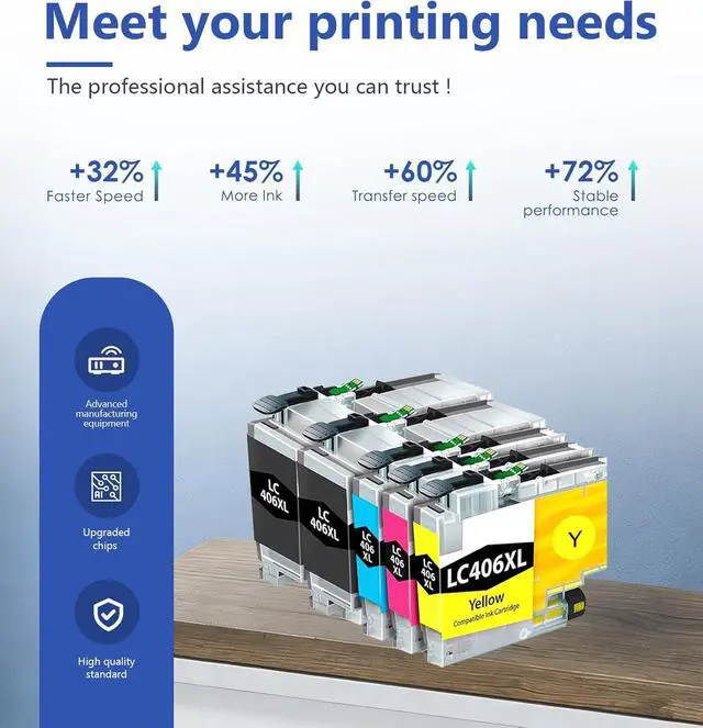 Smart Chip Compatibility: Equipped with the latest smart chip, it enables instant recognition of Brother MFC-J5855DW MFC-J6555DW MFC-J4535DW MFC-J4335DW MFC-J6955DW MFC-J4345DW MFC-J5955DW series printers. Plug and play without complex debugging
