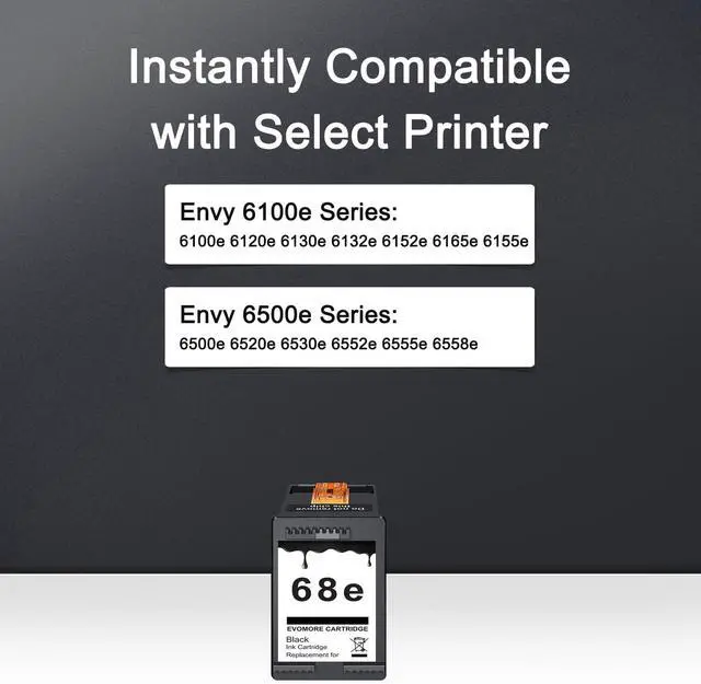 68XL Work for: Envy 6100e Series: 6100e 6120e 6130e 6132e 6152e 6165e 6155e; Envy 6500e Series: 6500e 6520e 6530e 6552e 6555e 6558e