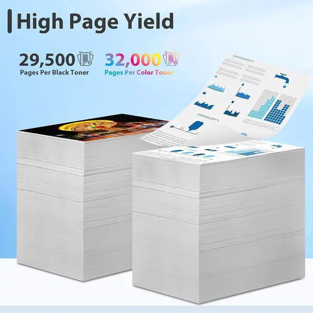 High Yield Up to 29,500 pages per 827A black toner, 32,000 pages per color