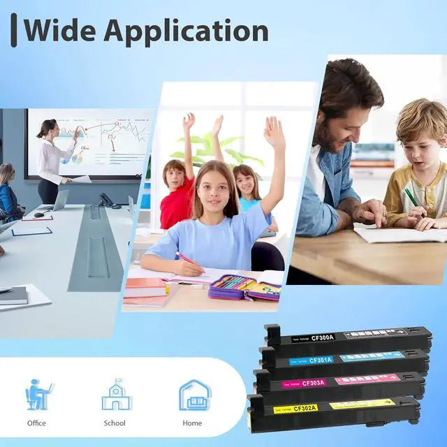 Cartridge Model CF300A Black Toner Cartridge, CF301A Cyan Toner Cartridge, CF302A Yellow Toner Cartridge, CF303A Magenta Toner Cartridge
