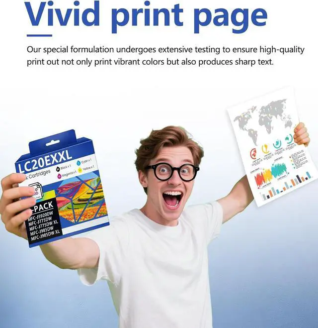 Smart Chip Compatibility: Equipped with the latest smart chip, it enables instant recognition of Brother MFC-J5920DW, MFC-J775DW, MFC-J775DW XL, MFC-J985DW, MFC-J985DW XL series printers. Plug and play without complex debugging