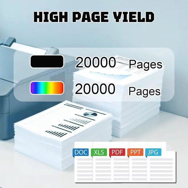 High Page Yield: Black and white print pages: over 20000 pages Color print pages: over 20000 pages(5% coverage)