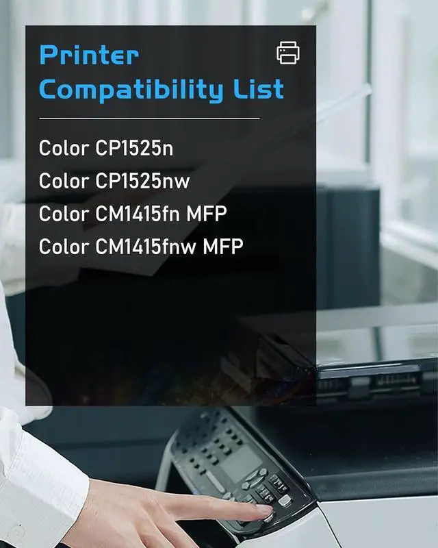This Cartridges works with: Color MFP CM1415fn CM1415fnw, Color CP1525n CP1525nw Printer