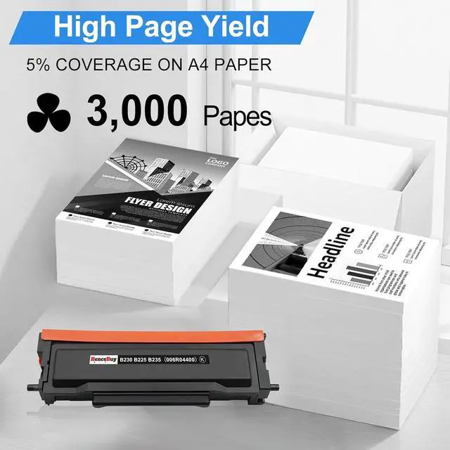 High Page YieldUp to 3000 pages per black B230 B225 B235 toner/006r04400 toner cartridge (Letter/A4, at 5% coverage).