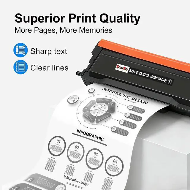 High-quality Print ResultsThis professionally compatible B230 B225 B235 006R04400 toner cartridge produces crisp, clear text and high-resolution graphics that won't fade.