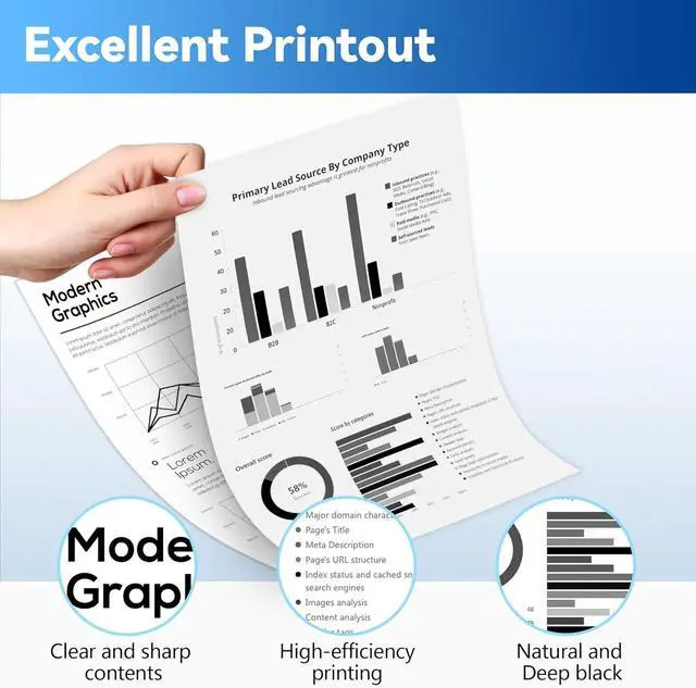 Advanced printing technology ensures that every sheet of paper is rendered with clear, sharp images and text, Vibrant colours and deep blacks