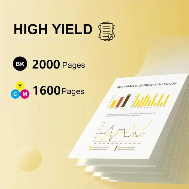 High Yield: Up to 2000 Pages per Black and 1600 Pages per Color Toner Cartridge at 5% coverage
