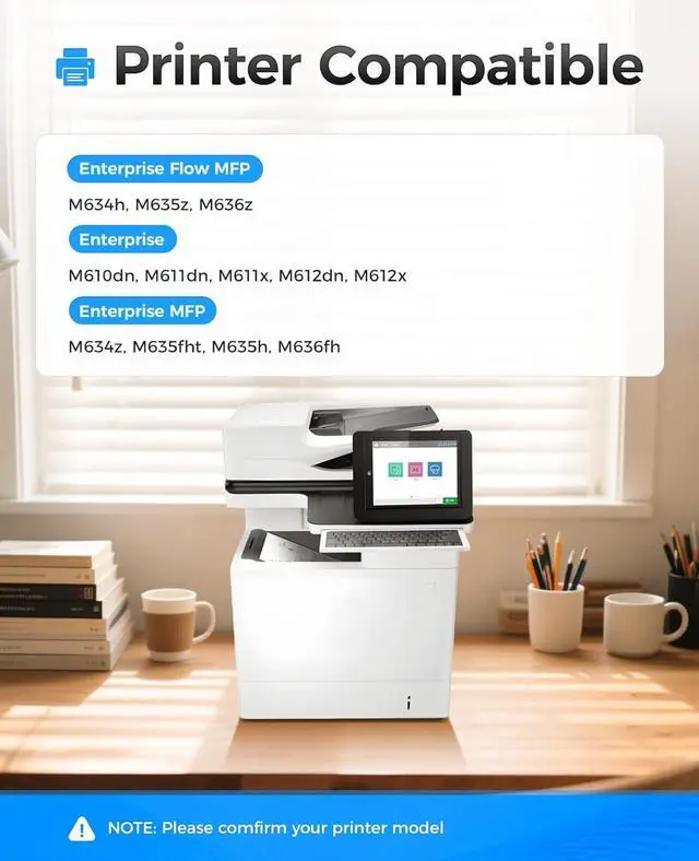 Compatible Printers: Compatible with HP LaserJet Enterprise Flow MFP M634h, M635z, M636z LaserJet Enterprise M610dn, M611dn, M611x, M612dn, M612x LaserJet Enterprise MFP M634z, M635fht, M635h, M636fh Printer.