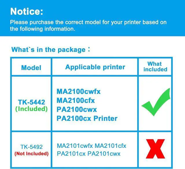 Compatible Printers: Replacement for Kyocera ECOSYS MA2100cwfx MA2100cfx PA2100cwx PA2100cx Printer