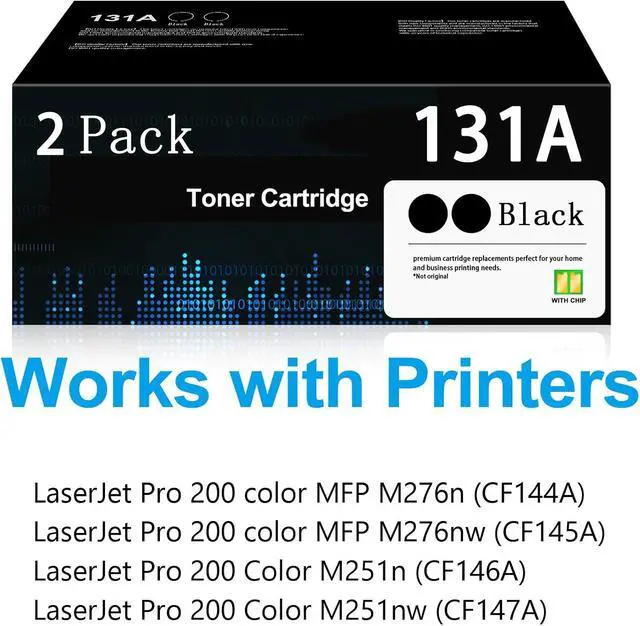 Includes: 2 pack black toner cartridge (CF210A), for a total of two 131A toner cartridges