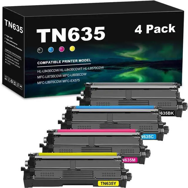 Included in the package are four TN635 toner cartridges: black, cyan, yellow, and magenta( tn635y tn635m tn635c tn635bk ).