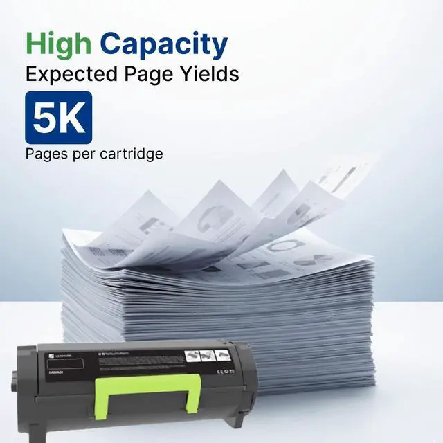 High Yield 5,000 Page Capacity Designed for high-volume black-and-white printing with clear text and reducing toner replacement frequency in office environments.