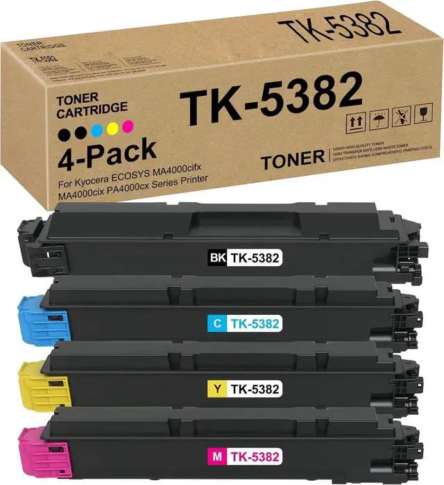 Includes: TK-5382K TK-5382C TK-5382M TK-5382Y Toner Cartridge,4-Pack(Black,Cyan,Magenta,Yellow)