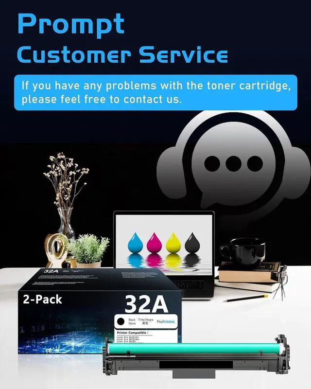 Package Includes: 2 Black CF232A 32A Compatible Drum Unit Replacement for 32A HP Imaging Drum